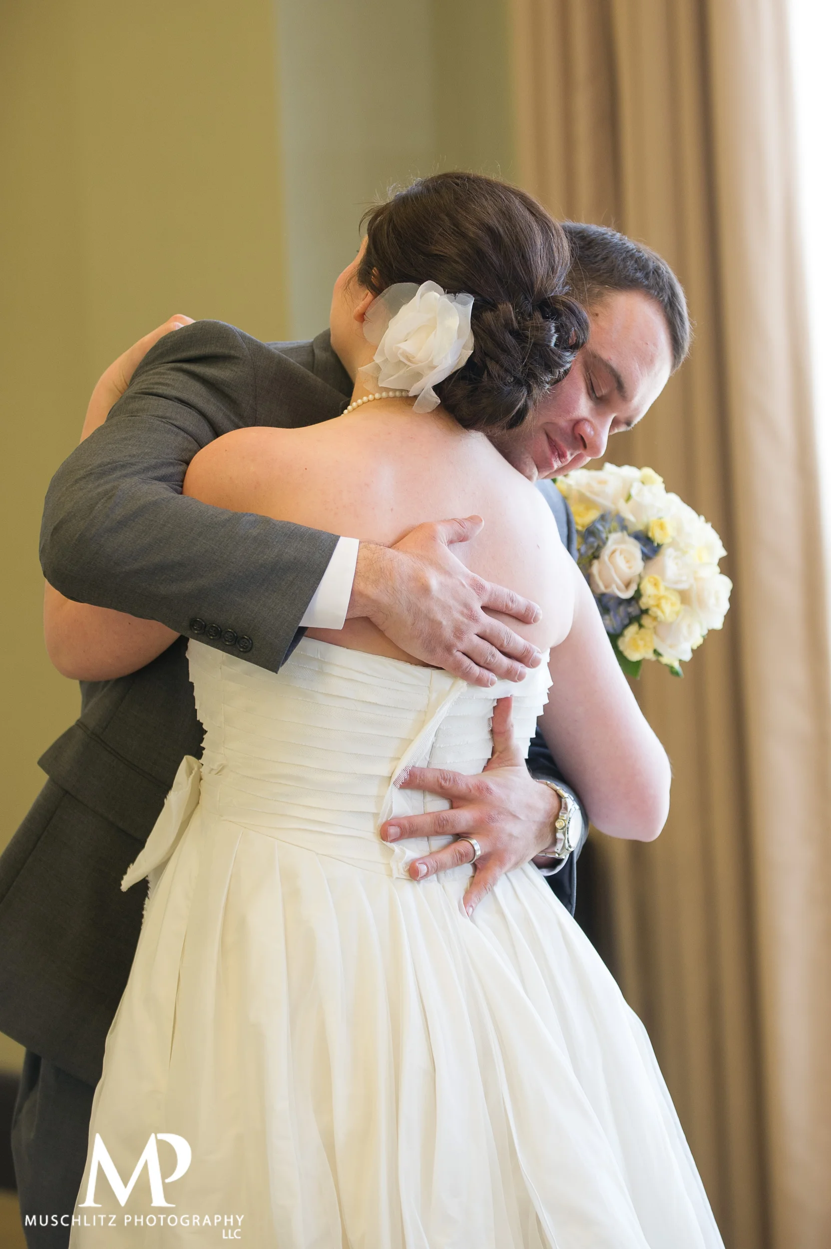 Every couple will have the big moment when they see each other for the first time when walking the aisle. There is nothing that can top that big moment. At Muschlitz Photography, we think of the first look session as a second "big" moment of your day. We love capturing the expressions when a couple sees each other for the very first time during a first look. Capturing these expressions can be more challenging for photographers during the actual ceremony since we're not able to move around as freely, but we can easily photograph them during the first look for you to remember the smiles and tears from seeing each other for the first time.