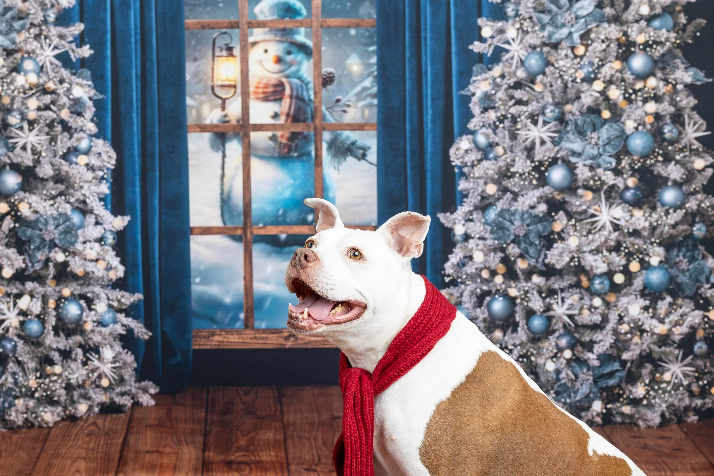 3 NEW Backdrop Options: Choose your favorites or enjoy all 3 - Christmas Tree Farm, Festive Tree Farm Hut, and Blue & Silver Christmas Window
